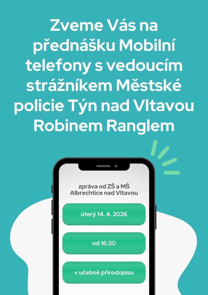 V úterý 14.4.2026 od 16:30 v učebně přírodovědy ZŠ a MŠ v Albrechticích nad Vltavou